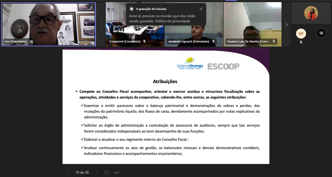 Segundo o Professor Ciro Weber, “o curso representa uma ajuda significativa para aperfeiçoar conhecimentos sobre a função, desenvolver habilidades para enfrentar os desafios e ter atitude para executar em nome dos associados a fiscalização nas operações das cooperativas”.